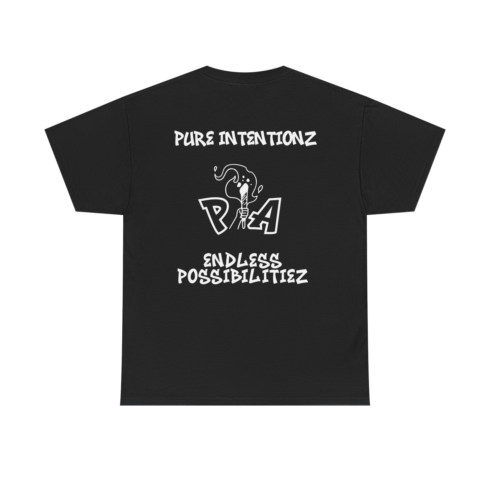 Back: “Pure Intentionz, Endless Possibilitiez”, sharp contrast, timeless meaning.