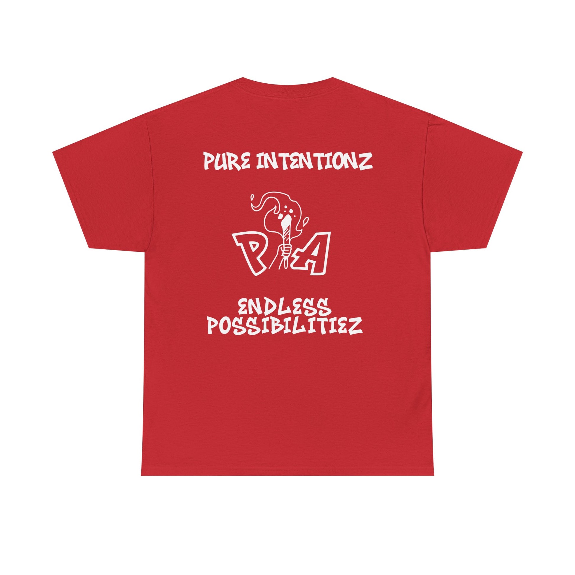 Back: “Pure Intentionz, Endless Possibilitiez”, courage stitched in bold contrast.